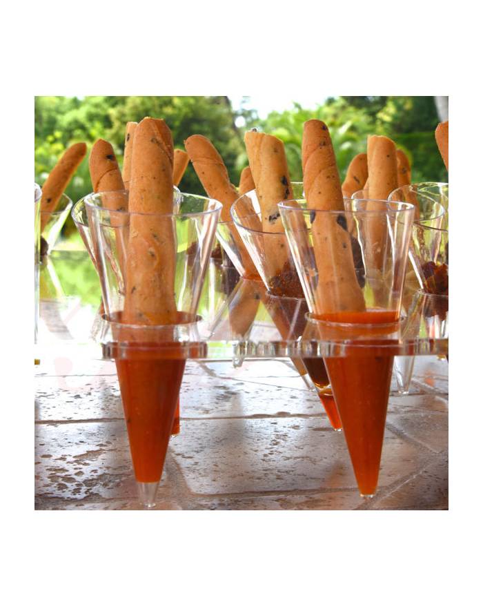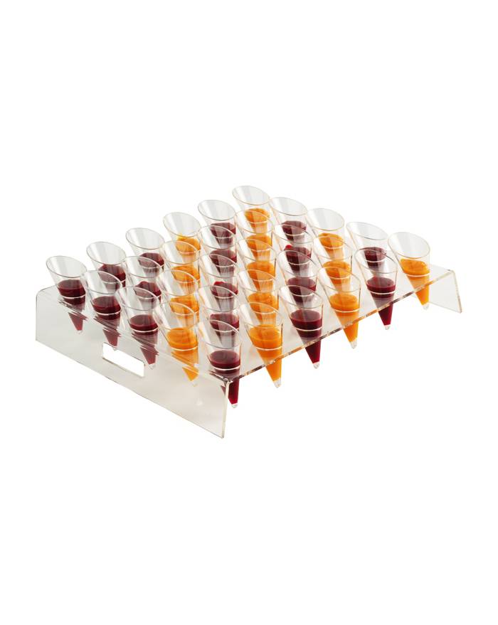 Sweet Flavor mini cone displays are crafted from high-quality reusable acrylic, offering both recyclable and reusable benefits. Specifically designed for Sweet Flavor mini plastic cones with a 1.5 oz capacity, our serving trays enhances the presentation of desserts and appetizers with elegance. Proudly MADE IN USA, these acrylic displays ensure durability and a stylish presentation for your culinary creations. Please note that the display is sold separately from the disposable mini cones, allowing flexibility in your serving arrangements. Displays are available for 12 or 30 mini plastic cones, catering to larger gatherings or buffet setups with equal sophistication and practicality.