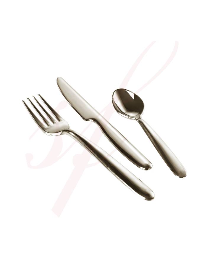 Our disposable Silver plastic Cutlery has the same shine and silver sparkle of stainless steel cutlery, giving you a unique, formal alternative to white, black or clear Disposable Cutlery.