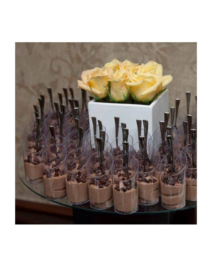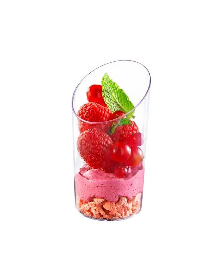 Discover Sweet Flavor’s iconic slanted mini plastic cups! Made from premium materials and featuring a distinctively angled design to highlight any buffet table with modern artistry. Eco-friendly, versatile, and resistant to cracking or warping, these elegantly styled cups make sure your vibrant culinary creations shine. Defined by their contemporary design with robust, durable plastic that can be reused, recycled, or disposed of responsibly, you and your guests will love these mini truncated clear plastic cups!