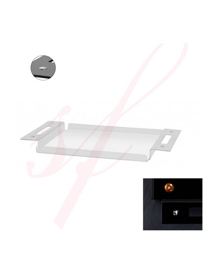 Diamond Upscale Clear Serving Tray Contemporary and re-usable upscale serving tray that includes 4 Swarovski elements. This fancy serving tray is made from high quality acrylic and is perfect for passing hors d'oeuvres, appetizers and desserts.