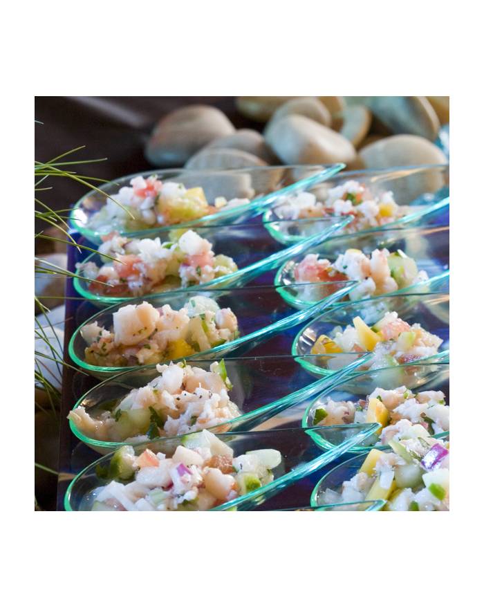 Eco-friendly and disposable, Sweet Flavor teardrop catering spoons are perfect for showcasing a wide range of culinary creations at any event. These spoons are designed to enhance the presentation of entrees and culinary arts with elegance and convenience. Whether used for appetizers, desserts, or gourmet dishes, they provide a stylish and practical solution for catering needs. Ideal for various scenarios, these spoons ensure that your guests can enjoy their food with ease and sophistication. Crafted to meet the demands of professional caterers and home chefs alike, they offer a sustainable option without compromising on quality or aesthetics.