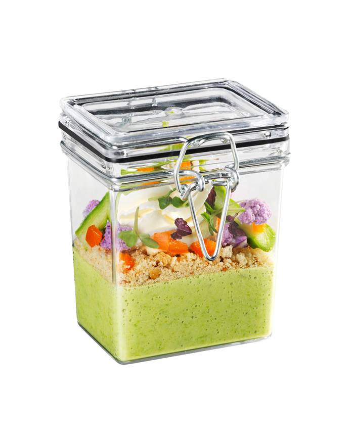 Experience timeless elegance with Sweet Flavor's classic traditional jars featuring clamp lids. These vintage-inspired recyclable plastic jars exude sophistication and charm, ideal for a variety of occasions such as catering events, private parties, weddings, and takeout services. Available in clear plastic, these mason jars come in round and square shapes, ensuring versatility and stylish presentation. Our mini elegant plastic jars are not only recyclable and reusable but also elevate every occasion with a touch of refinement. Discover how these jars enhance the beauty and functionality of every use, adding a distinctive flair to your gatherings.