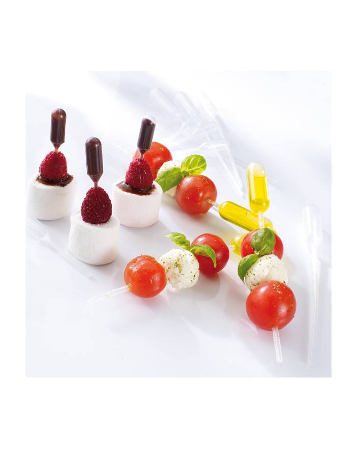 Sweet Flavor foodstuff grade disposable pipettes 8 ml are produced from eco friendly plastic and perfect for aperitif, cocktails and cupcakes.