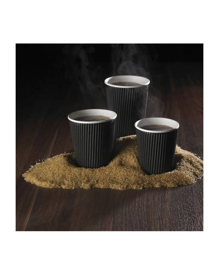 Our disposable paper coffee cups are available in 8 oz. and 12 oz Gold or Black.