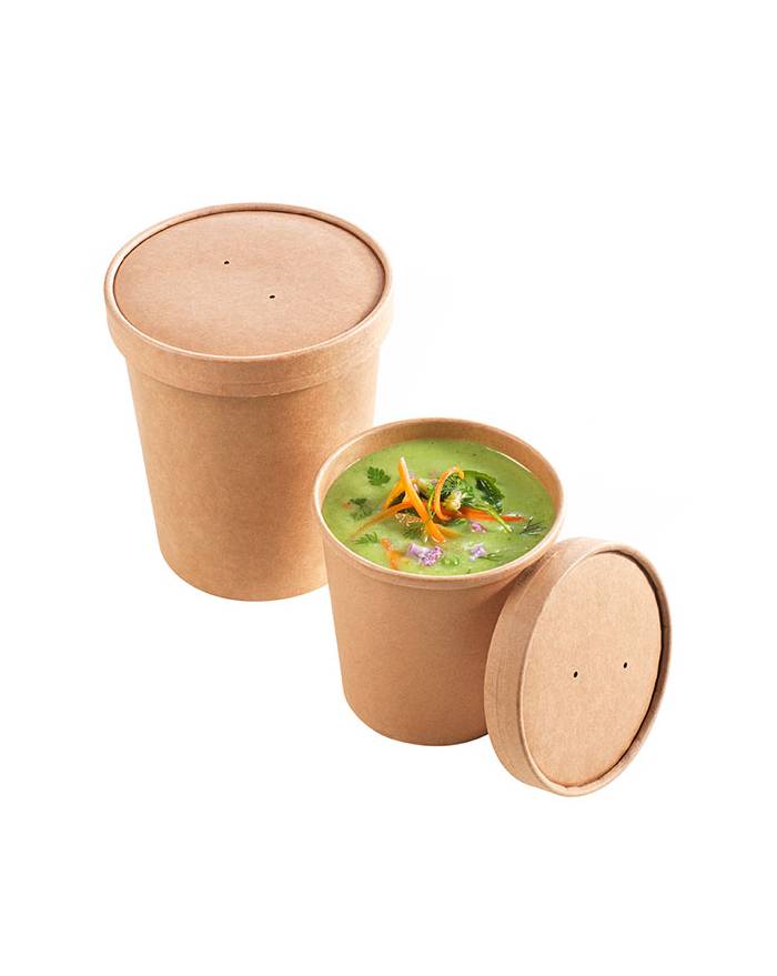 Sweet Flavor offers a collection of Kraft cups for soup and frozen desserts. These containers are designed to keep your hot or cold foods at the perfect temperature, thanks to an internal coating. Ideal for various takeaway dishes, our natural brown-hued Kraft Soup and Gelato Containers come with a lid that securely keeps contents at the proper temperature and prevents spills, though the lid is sold separately. Environmentally friendly, recyclable, and biodegradable, these containers are also suitable for ice cream, resisting both cold and heat.