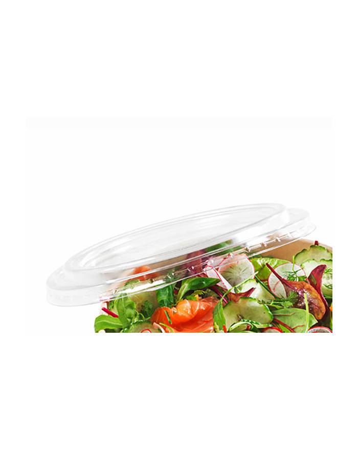 Sweet Flavor PET Lid fits perfectly with our 25oz Kraft salad bowl.