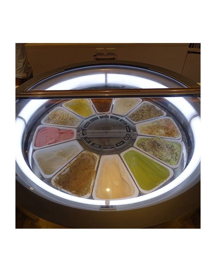 Sweet Flavor lid for 4 liters white triangle Tonda ice cream container. Our Gelato container is made from premium recyclable plastic. Lid also available.