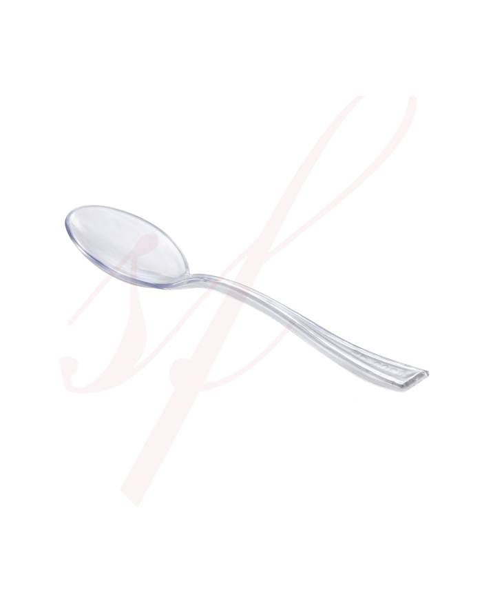 Disposable and recyclable, Sweet Flavor mini clear disposable spoons are specially designed to match all of our disposable mini dishes collection. Sweet Flavor mini plastic spoons are the perfect catering accessory for desserts, coffee and more.