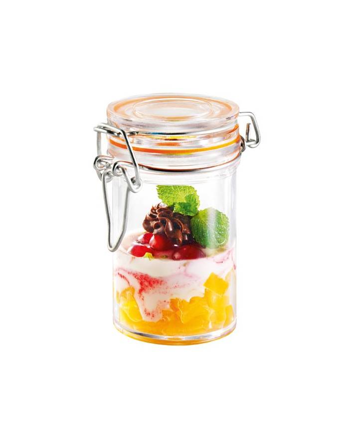 Experience timeless elegance with Sweet Flavor's classic traditional jars featuring clamp lids. These vintage-inspired recyclable plastic jars exude sophistication and charm, ideal for a variety of occasions such as catering events, private parties, weddings, and takeout services. Available in clear plastic, these mason jars come in round and square shapes, ensuring versatility and stylish presentation. Our mini elegant plastic jars are not only recyclable and reusable but also elevate every occasion with a touch of refinement. Discover how these jars enhance the beauty and functionality of every use, adding a distinctive flair to your gatherings.