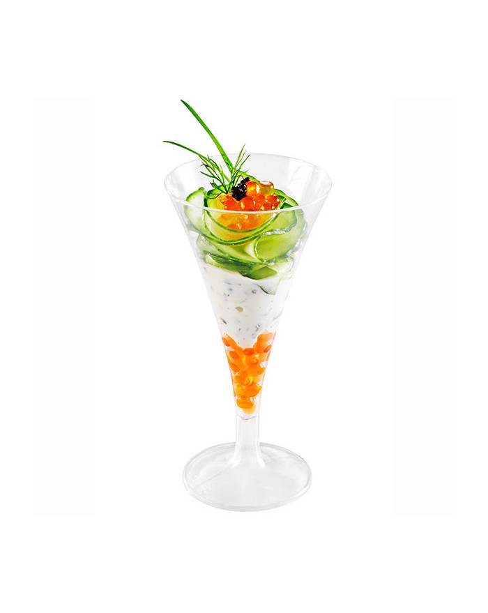 Experience the elegance of our disposable and recyclable plastic cocktail glasses, designed to resemble real glass with their sleek and sophisticated design. Ideal for serving special drinks, desserts, and appetizers, these mini glasses require no assembly, making them convenient for any occasion. Their one-piece construction ensures durability and ease of use, allowing you to focus on hosting without the worry of cleanup. Perfect for adding a modern and fancy touch to your next event, these cocktail glasses are sure to impress guests and elevate the presentation of your beverages and culinary creations alike.