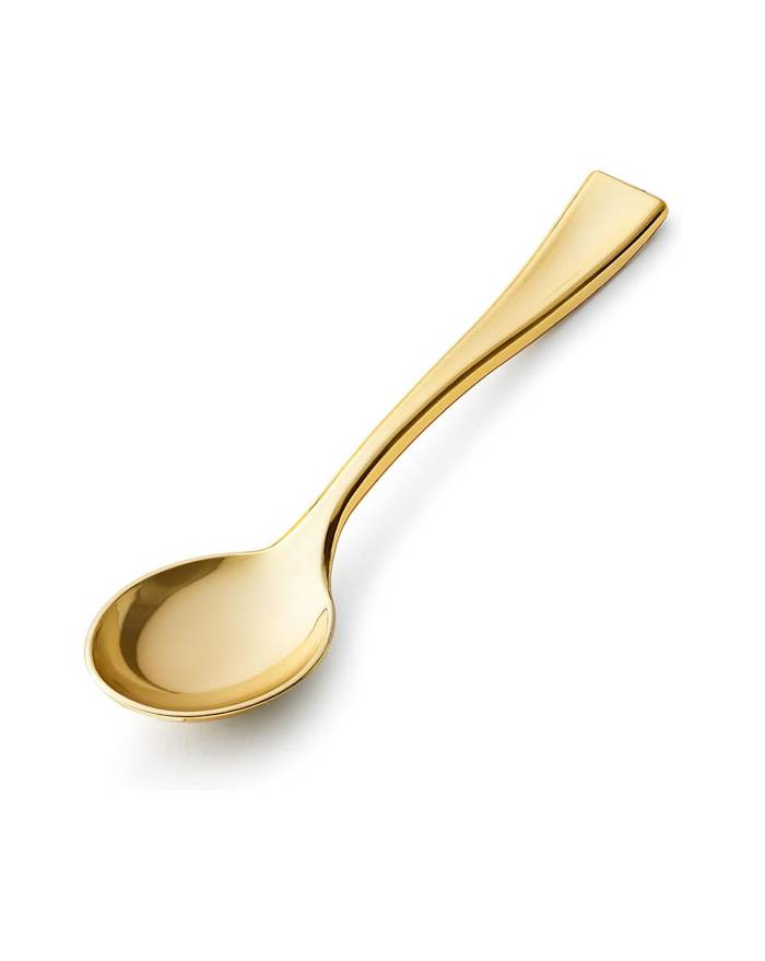 Disposable and recyclable, Sweet Flavor mini gold disposable spoons are specially designed to match all of our disposable mini dishes collection. Sweet Flavor mini plastic spoons are the perfect catering accessory for desserts, coffee and more.