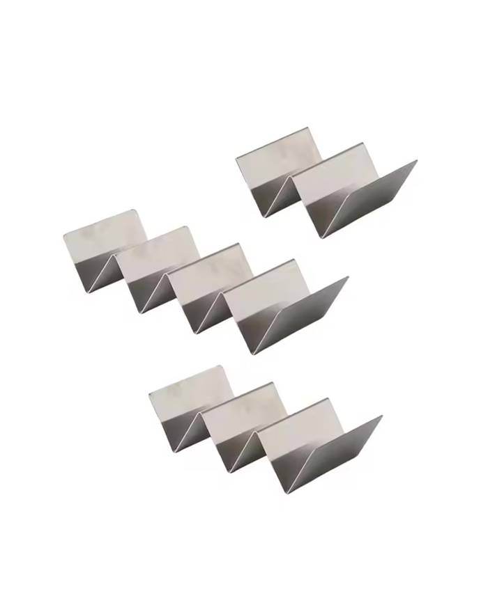 What a better way to display tacos? we have the solution. This modern style taco holder will enhance your customers's dining experience. This cute taco holder will keep your tacos upright and avoir creating mess on the plate and table. Made from high quality stainless steel, this holder is reversible and allow you to use it for 2 or 3 tacos.