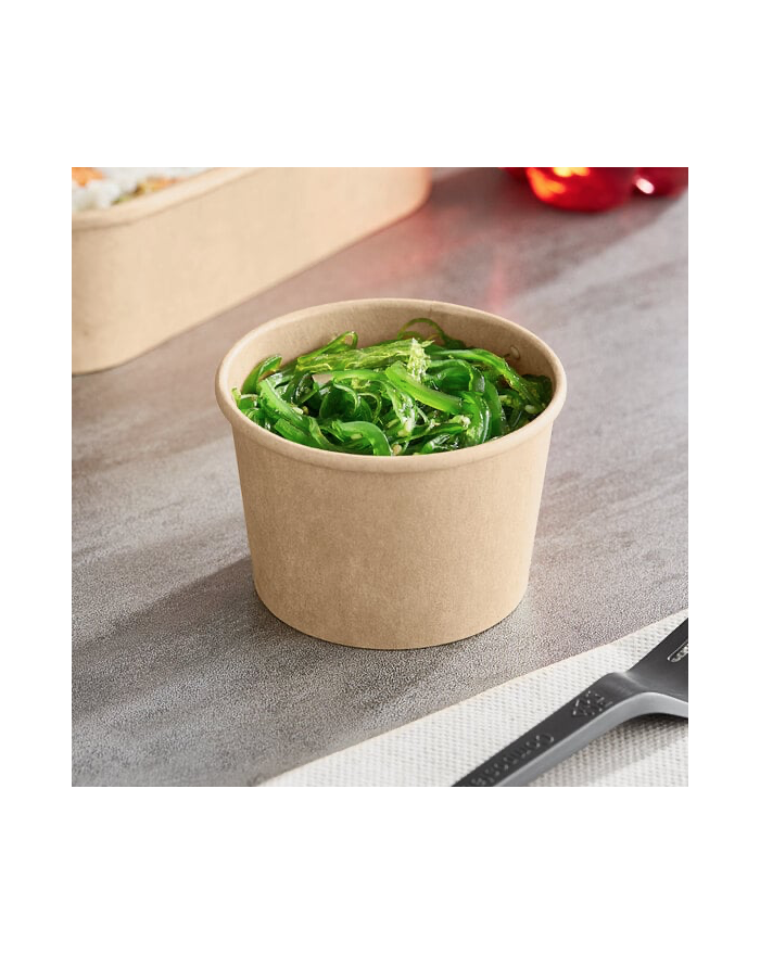 Sweet Flavor's Kraft Paper Salad Containers, available in a natural brown hue, are a popular choice for all types of takeaway food items. Our to-go containers are grease and leak-resistant, and are perfect for soups, stews, salads, cooked vegetables, or hot cereals. These containers are ideal for restaurants, bakeries, food trucks, hotels, resorts, and caterers. With a competitive quality-to-price ratio, they offer excellent value for any foodservice operation. Sold in boxes of 1000 pieces, our containers are FDA compliant, providing both safety and reliability for your business.