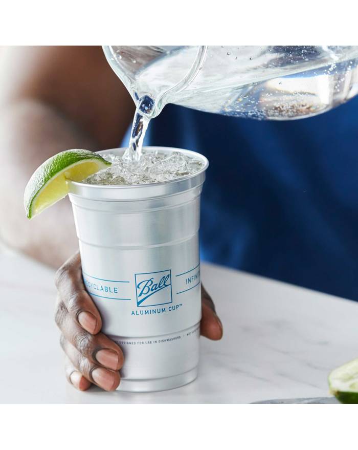 Why using plastic single use cups when you can serve drinks in Ball reusable aluminum cups. Made from premium 100% recyclable aluminium, these ball cups 16 oz. are simply perfect to serve you cold drinks such as beers, sodas and any other beverages.